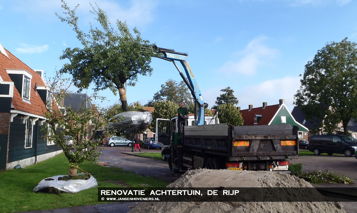 Voor het weg halen van de aanwezige bomen hebben wij gebruik gemaakt van een torenkraan, daardoor konden we de bomen in grote stukken wegzagen en transporteren zonder veel schade toe te brengen aan de omgeving. Met behulp van onze mobiele versnipperaar hebben wij het vrijgekomen groenmateriaal versnipperd en afgevoerd. De aanwezige fruitbomen zijn in hun geheel verwijderd, waardoor deze een nieuwe bestemming konden krijgen.